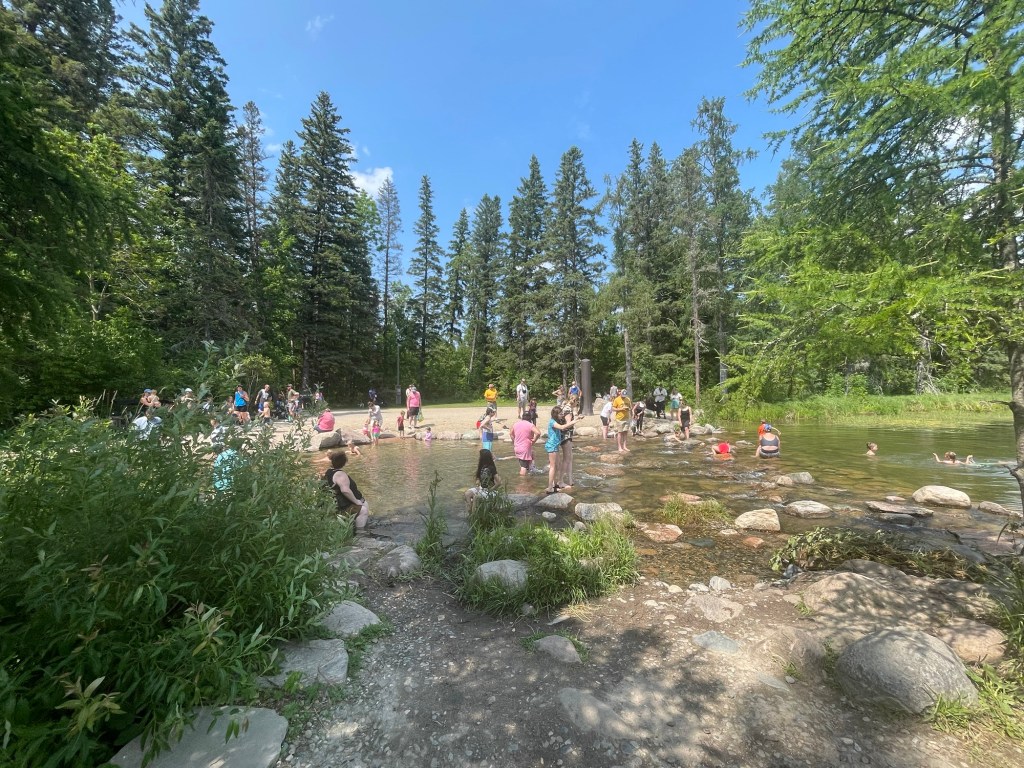 The beautiful blue sky, dotted with clouds resembling little cotton balls, reflected across the lake. A gentle breeze caressed our faces. The trickling water was clean and clear as a glass of drinking water, though it probably wouldn’t be wise to drink it. Its temperature was a little cool but not unbearable.